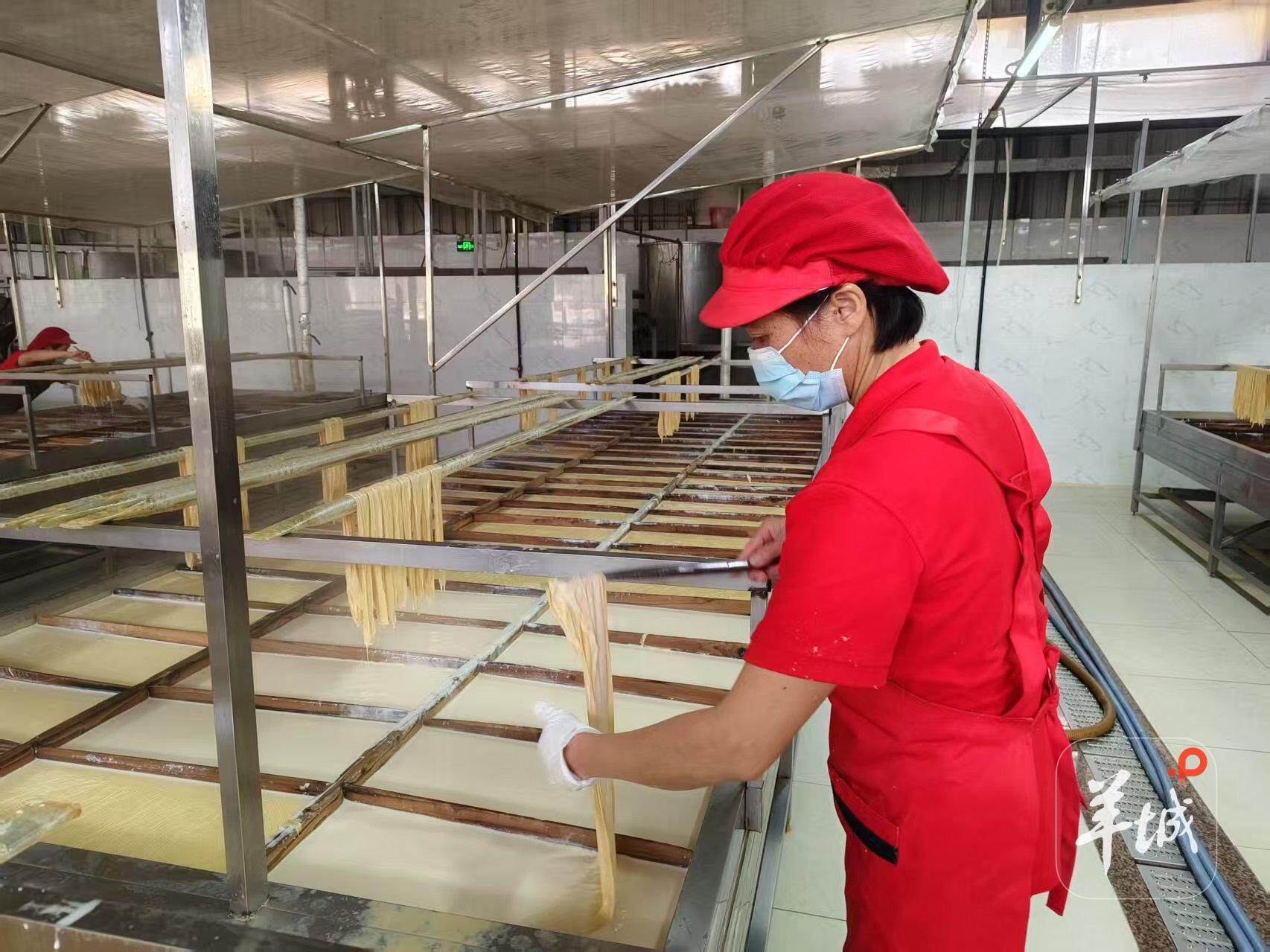 如今,产业园已覆盖大坝镇、阳明镇等4个镇64个行政村,集聚5家实施主体,建成278家腐竹加工销售企业及家庭作坊,拥有730条生产线,2024年腐竹年产量达1.55万吨,年综合产值约7亿元,预计全面达产后总产值将突破10亿元。